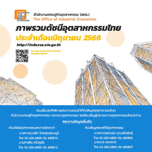 ภาพรวมดัชนีอุตสาหกรรมเดือนมิถุนายน 2566 สามารถดูรายละเอ…