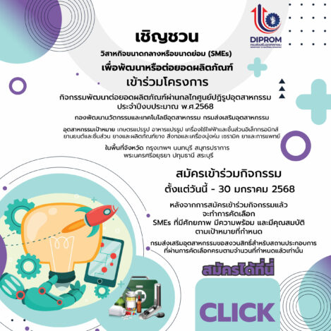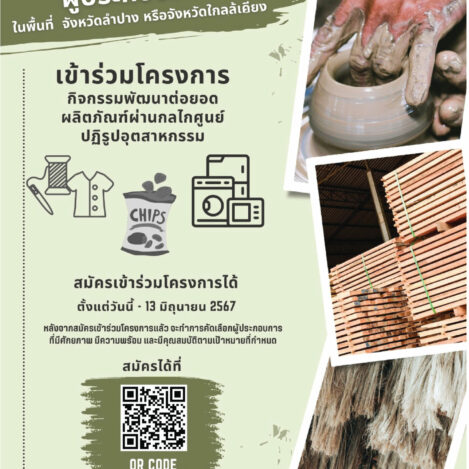 รับสมัครผู้ประกอบการ เข้าร่วมกิจกรรมพัฒนาต่อยอดผลิตภัณฑ์ผ่านกลไกศูนย์ปฏิรูปอุตสาหกรรมโครงการ 4.2 – 1 การยกระดับศูนย์ปฏิรูปอุตสาหกรรมสู่ความยั่งยืน ปีงบประมาณ พ.ศ. 2567