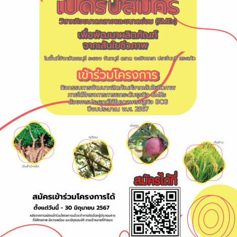 รับสมัครผู้ประกอบการเข้าร่วม กิจกรรมการพัฒนาผลิตภัณฑ์จากเส้นใยชีวภาพ ภายใต้โครงการการยกระดับธุรกิจ SMES ด้วยการประยุกต์ใช้โมเดลเศรษฐกิจ BCG ปีงบประมาณ พ.ศ. 2567