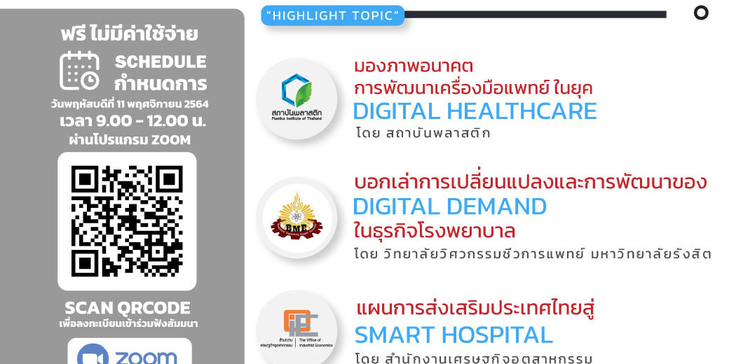 หัวข้อ มองภาพอนาคต การพัฒนาเครื่องมือแพทย์ ในยุค Digital Healthcare โดย สถาบันพลาสติก