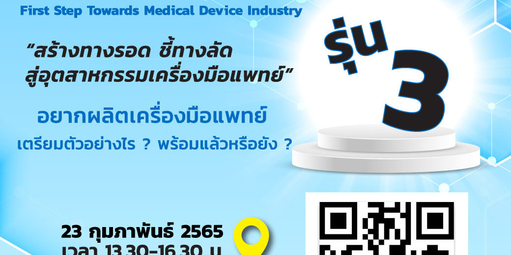 พบกับหลักสูตรเปิดประตู สู่อุตสาหกรรมเครื่องมือแพทย์ (First step towards medical device industry) หลักสูตรที่จะทำให้การก้าวเข้าสู่อุตสาหกรรมเครื่องมือแพทย์ไม่ได้ยากอีกต่อไป โดยหลักสูตรนี้วัตถุประสงค์หลัก เพื่อถ่ายทอดองค์ความรู้ในการเข้าสู่การผลิตเครื่องมือแพทย์ และกระบวนการพัฒนาผลิตภัณฑ์ของสถานประกอบการอัพเดทมาตรการกฏระเบียบ และการสนับสนุนที่เกี่ยวข้อง เพื่อให้ทันต่อการปรับตัวของผู้ประกอบการ