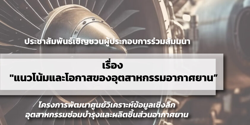 เพื่อติดตามความเคลื่อนไหวและรวบรวมข้อมูลที่เกี่ยวซ้องกับอุตสาหกรรมนี้ เพื่อใช้ในการกำหนดกลยุทธ์และมาตรการที่เหมาะสม และให้ทันกับกระแสการเปลี่ยนแปลงในอนาคต สถาบันยานยนต์ จึงขอเรียนเชิญผู้ประกอบการในอุตสาหกรรมเข้าร่วมงานสัมมนา เรื่อง “แนวโน้มและโอกาสของอุตสาหกรรมอากาศยาน” ในวันอังคารที่ 25 กรกฎาคม พ.ศ. 2566 เวลา 08.30 น. – 12.00 น. ณ ห้อง Somerset Ballroom ชั้น 5 โรงแรม เดอะ เบอร์เคลีย์ ประตูน้ำ กรุงเทพมหานคร