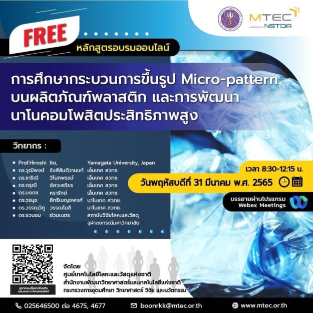 ประชาสัมพันธ์ หลักสูตรอบรมออนไลน์ การศึกษากระบวนการขึ้นรูป MICRO-PATTERN บนผลิตภัณฑ์พลาสติกและการพัฒนานาโนคอมโพสิตประสิทธิภาพสูง